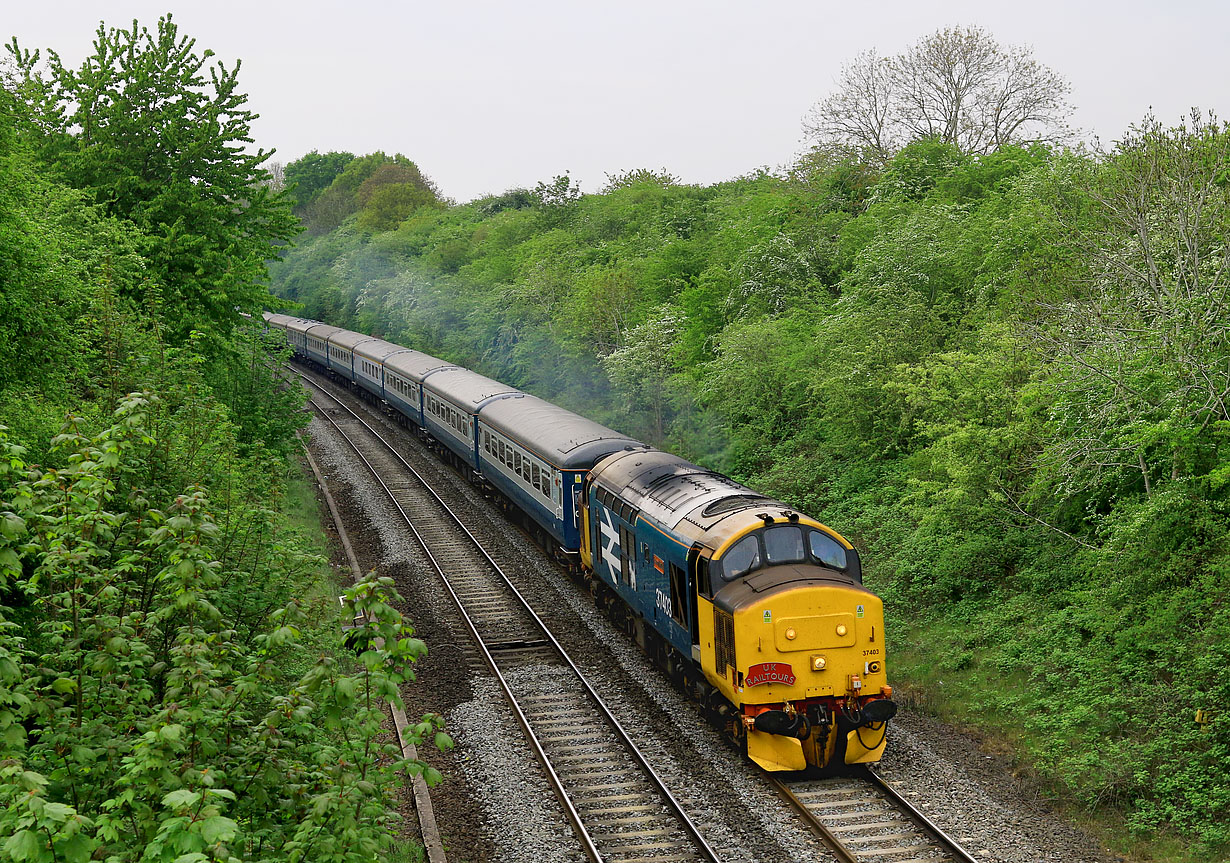 37403 Isle of Mull passes Whitnash on 26 April 2025 with the UK Railtours 1Z38 15:31 Kings Norton Signal SY522 to Stratford 'The Really Good Positioning Move' railtour. 20007 & 20205 are hidden by the foliage on the rear of the train.