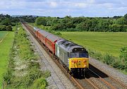 50008 Thunderer & 67028 pass Fiddington on 27 May 2023 with the Retro Railtours 1Z68 05:48 Huddersfield to Paignton 'The Retro Devon Belle II' railtour. This was running just a couple of minutes late, but just a few miles further on it would encounter a massive delay due to a level crossing problem just north of Cheltenham. |