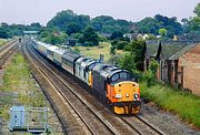 37701 runs along the up main line at Circourt Bridge, Denchworth, on 5 October 1999. The loco is in severe need of a repaint, but it didn't get one, as it was withdrawn a couple of months later. It was stored at Old Oak Common for a number of years, before being broken up in 2008. |