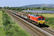 66013 passes Coedkernew on 3 September 1999 with the early running 6B51 14:25 Llanwern to Grange Sidings MGR empties. This location, along with Duffryn to the north east, and Marshfield to the south west, was one of my favourite 'go to' locations in South Wales. Not very scenic, but always with plenty of traffic. |