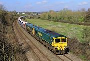 66518 passes Uffington on 8 December 2025 with the 6Z12 08:28 Stoke Gifford to Appleford stone train. I had chosen this location as the lineside trees here retain their leaves well into the winter, adding a bit of colour to the scene. |