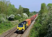 47193 passes Kings Sutton on 19 May 1998 with the 4M99 15:30 Southampton to Trafford Park freightliner. The loco had been running around in this tatty debranded grey livery for a couple of years, but would receive Freightliner's then new green livery the following year. |