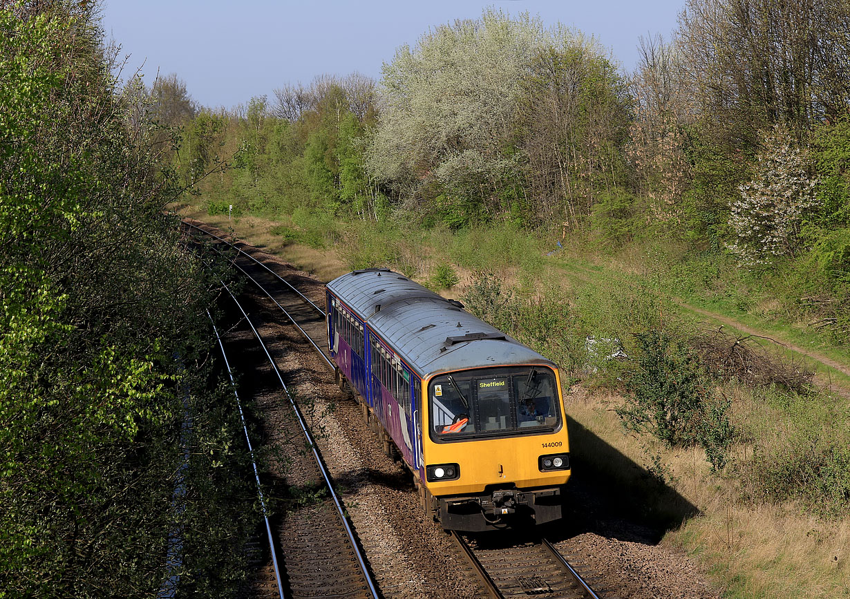 144009 passes Kilnhurst on 20 April 2019 with the 2C72 14:53 Hull to Sheffield Northern service. It is clearly evident that there were once four tracks at this location. This is the site of Kilnhurst West station, which closed in 1968.