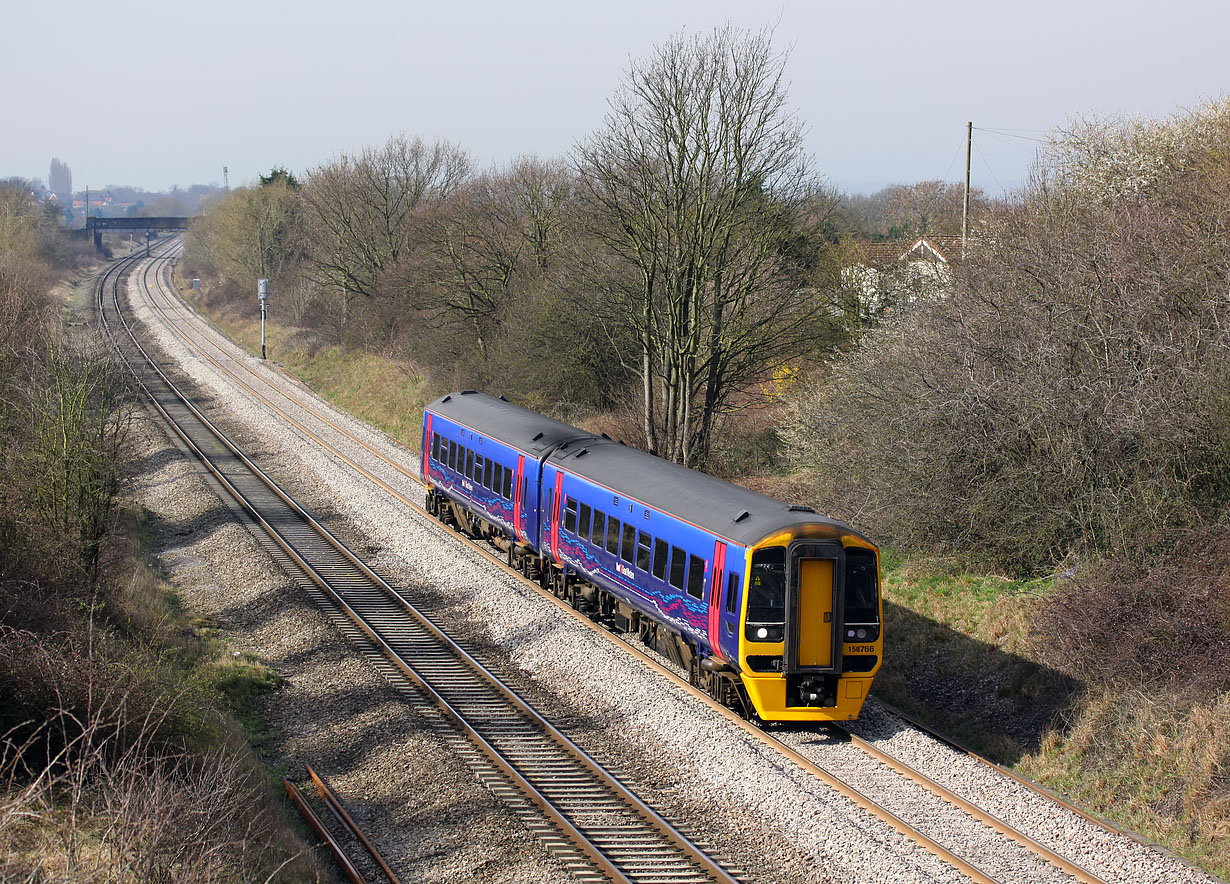 158766 passes Up Hatherley on 14 March 2011 with the 2G82 09:54 Swindon to Cheltenham First Great Western service. An ideal location if you like Class 158s, with Arriva's 158824 passing by half an hour before. An interesting comparison of liveries.