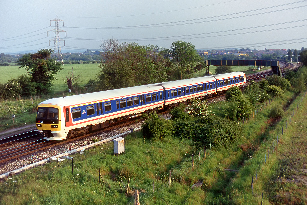 165030 passes Didcot North Junction on 20 June 1992 with the 1F52 18:08 Paddington to Oxford Network SouthEast service. Being a Class 165/0, this is of course an interloper on the Thames Valley route, given away by the fact that 'Chiltern Turbo' can be seen on the bodyside (at least on the high-res 35mm slide scan). This was during the period when several Chiltern 165/0s were on loan to work trains out of Paddington, pending the arrival of the Class 165/1s. |