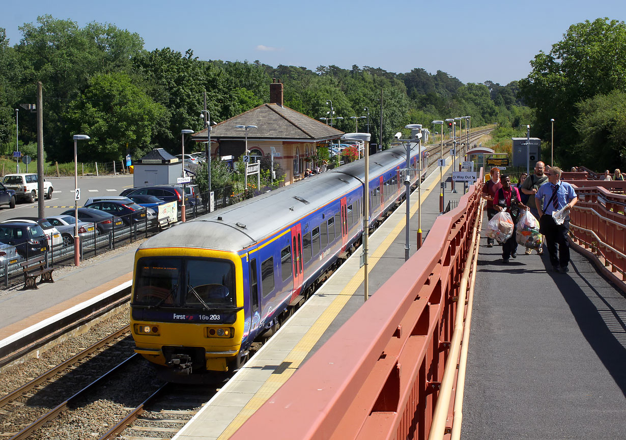 166203 prepares to leave Charlbury station on 19 July 2013, as some of its passengers head home across the newly installed footbridge. The train is the 1W27 13:21 Paddington to Moreton-in-Marsh First Great Western service. It seems the train has generated two large bags of rubbish on its way from London! |
