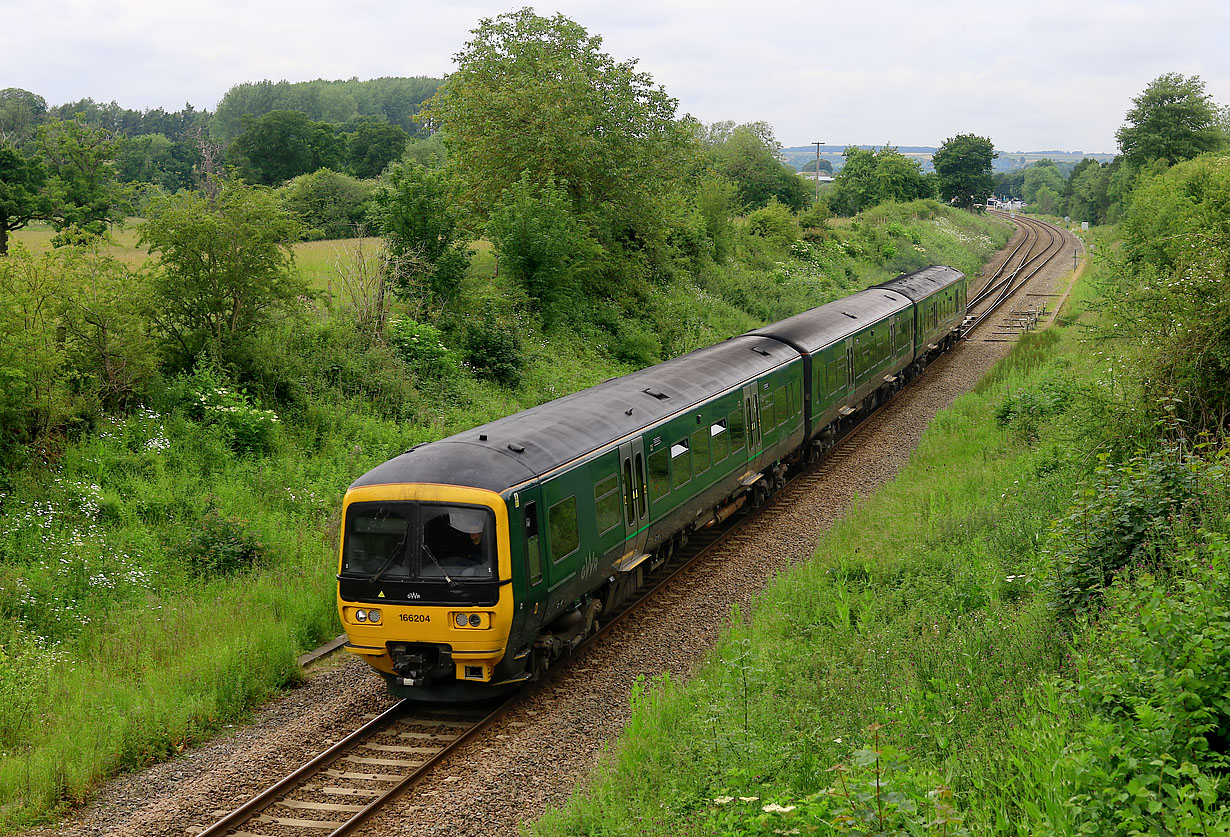 Not quite the mundane Cotswold Line picture that it appears to be. 166204 passes Cornbury Park on 19 June 2019 with the 1Z21 13:30 Long Marston to Paddington special, run in connection with the Rail Live event. If it wasn't for the fact that it had been running several minutes early, and therefore had to wait for the 1W27 13:22 Paddington to Worcester Shrub Hill GWR service, it would have passed non-stop through Charlbury station (just out of sight around the corner). |