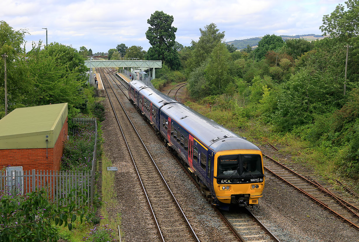 166211 pulls away from Ashchurch for Tewkesbury station on 12 August 2023 with the 2T49 15:49 Worcester Foregate Street to Bristol Temple Meads GWR service. The photographers on the platform are waiting for 66791 with the 4Z36 10:40 Kineton MoD to Ashchurch MoD freightliner flats. |