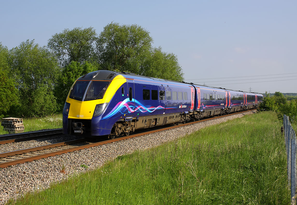 180103 speeds past Kennington on 6 June 2013 with the 2E95 17:15 Didcot Parkway to Great Malvern First Great Western service. This train stops at all stations on the Cotswold Line, including such remote halts as Combe and Finstock. These used to be only served by more mundane units. |