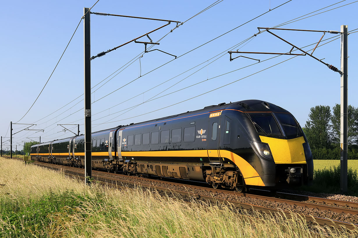 Running late due to a failed LNER Class 800, 180106 slowly passes Cromwell Moor on 29 June 2019 in a queue of delayed trains with the 1A68 15:29 Sunderland to Kings Cross Grand Central service. Although only ten minutes late at this point, the massive hold up it would encounter just a few miles down the line would see it arrive in London 40 minutes behind time. |