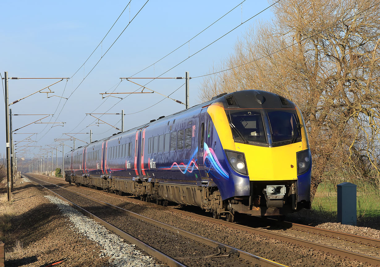 180111 speeds past Scrooby on 23 February 2019 with the 1A94 13:31 Hull to Kings Cross Hull Trains service. These units continue to give problems for their operators. First Great Western had no end of problems with them, and now Hull Trains are getting a bad reputation for punctuality due to their chronic unreliability. |
