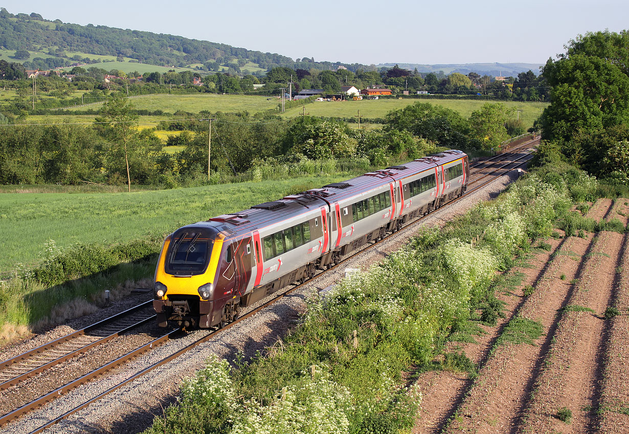 The Cow Parsley is in full flower, as 220029 passes Defford on 2 June 2009 with the 18:00 Bristol Temple Meads to Manchester Piccadilly CrossCountry service. This is always an excellent photographic location, especially in such superb evening light