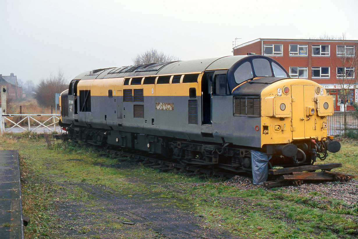 Not going anywhere in a hurry! 37099 stands on its only little section of track, next to Norwich Road, Dereham, on 14 December 1997. The loco only spent a brief period of time at the Mid Norfolk Railway, before being moved the short distance to the North Norfolk Railway, for restoration. Note the rusty mark where the Clydebridge nameplate was once fixed. |