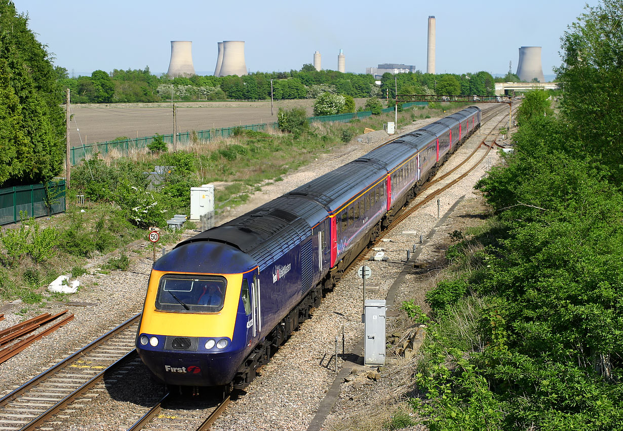 43023 passes Steventon on 8 May 2008 with the 1B46 14:45 Paddington to Swansea First Great Western service. Little did I realise it at the time, but a decade later this view would be lost to overhead electfrication, and the power station would by then be partly demolished. |