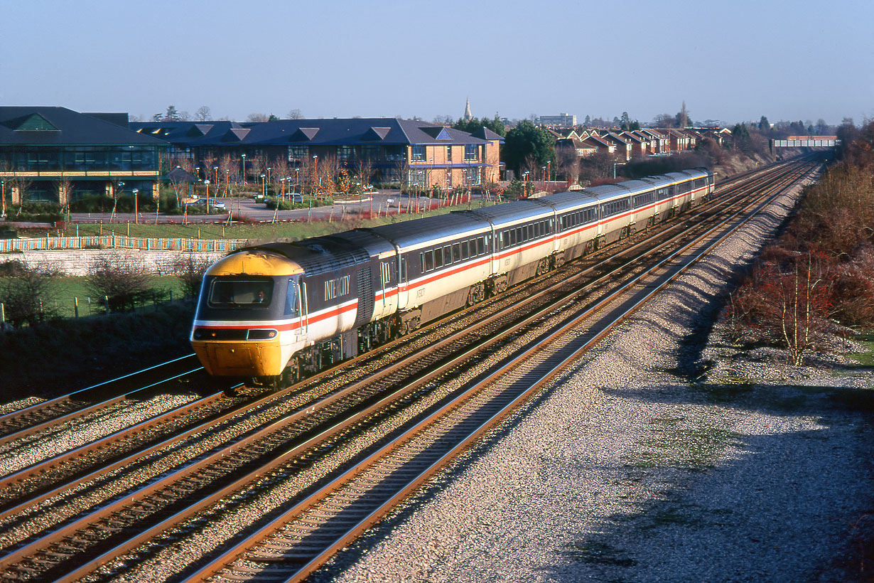 43023 passes White Waltham on 6 January 1991 with the 1C32 10:30 Paddington to Weston-super-Mare service. The train is running on the down relief line, due to the fast lines being closed for Sunday engineering work.
