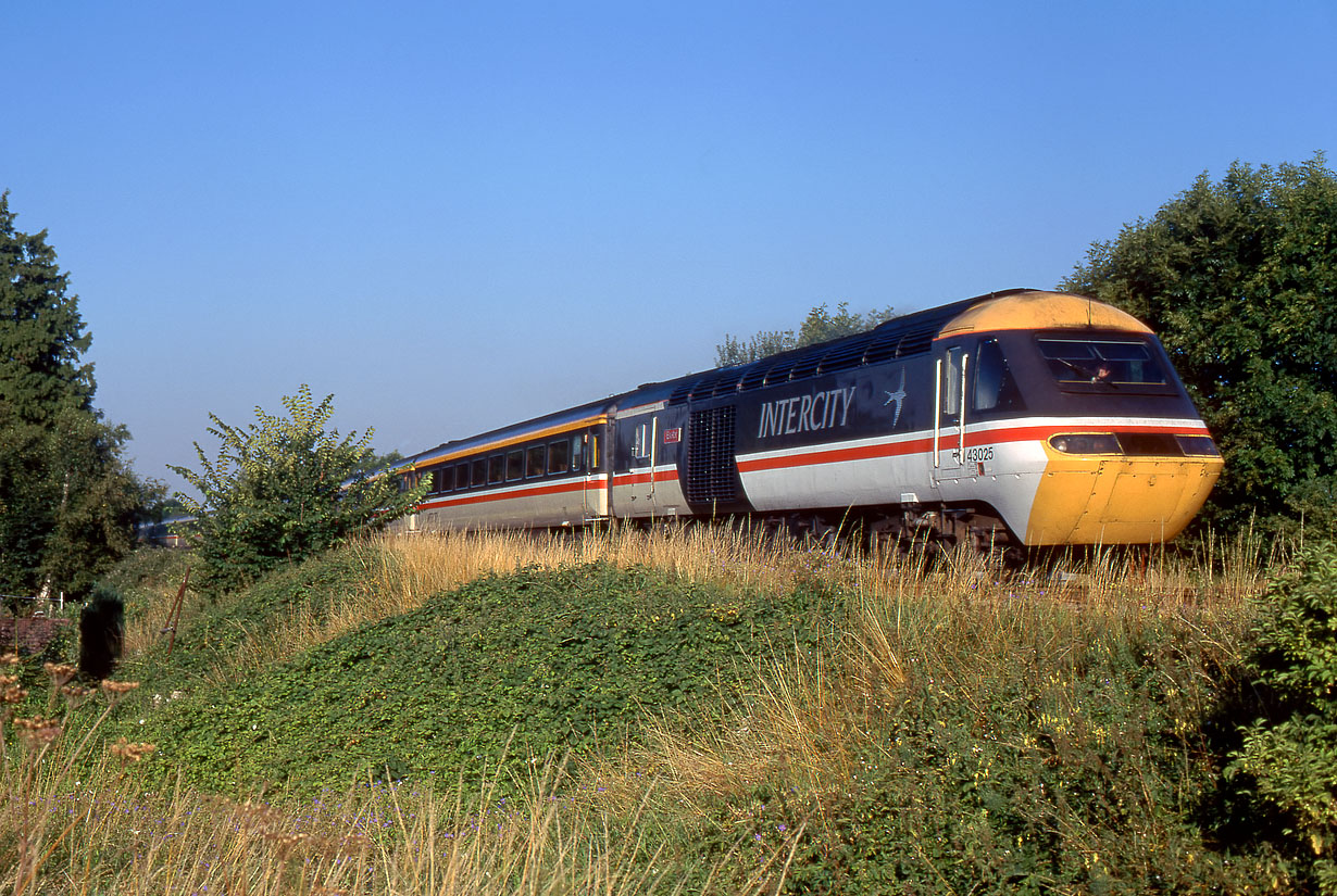 43025 Exeter approaches Ascott-under-Wychwood on 25 July 1995 with the 1A14 05:56 Hereford to Paddington service. The wave from the driver is not directed at me, but more likely at the Ascott-under-Wychwood signalman. I was standing directly behind the signal box. |