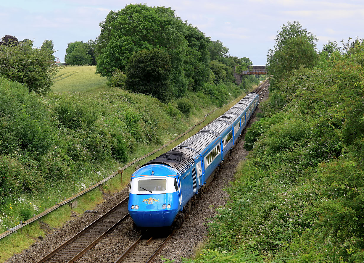 43055 passes Bredon on 27 June 2024 with the Midland Pullman 1Z43 06:15 Crewe to Paignton 'Torbay Riviera Pullman' railtour. After extensive vegetation clearance a few years earlier, the lineside bushes and brambles are once again becoming intrusive. |