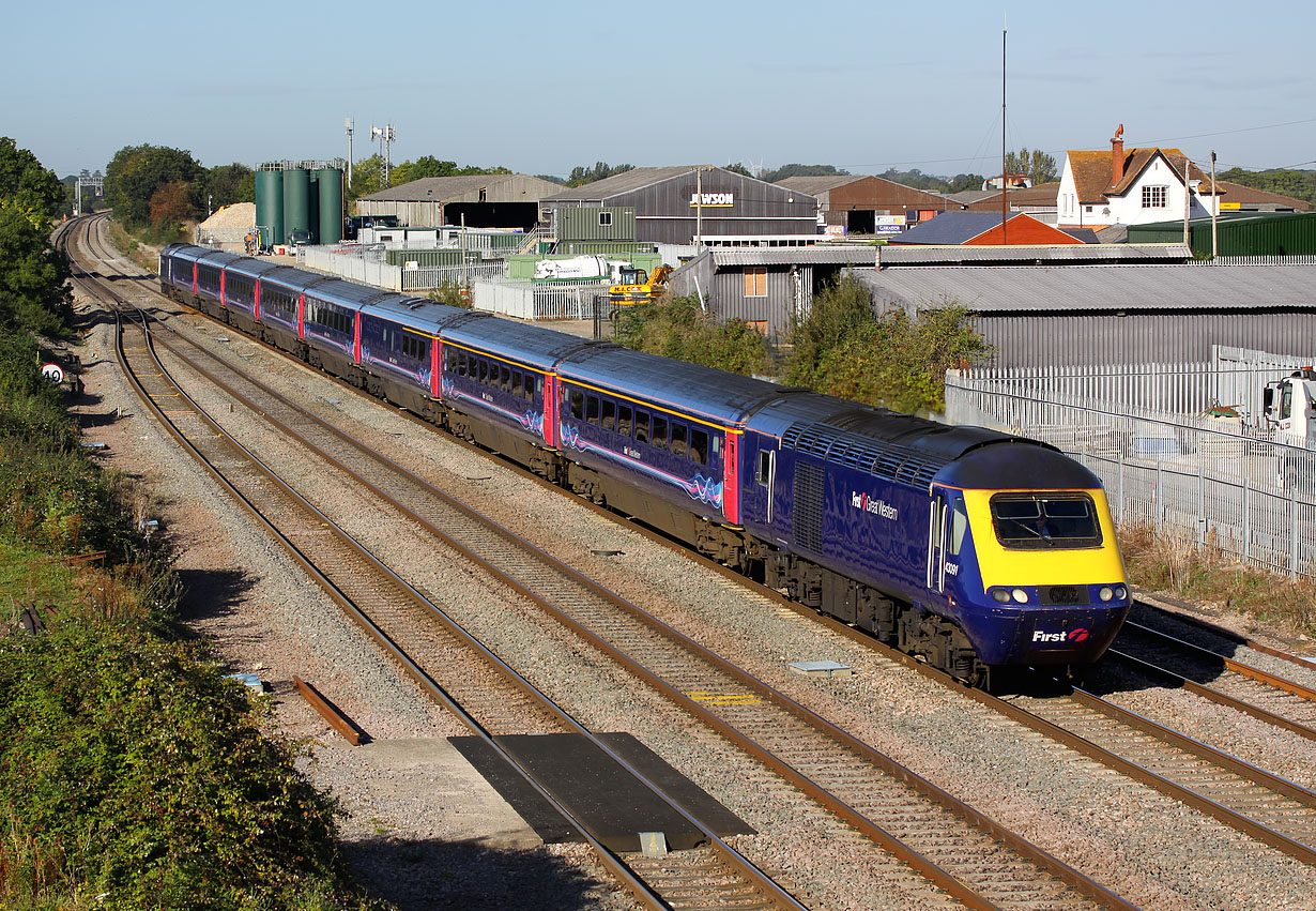 43091 speeds past Challow on 19 September 2012 with the 1A09 07:12 Taunton to Paddington First Great Western service. There is virtually no evidence now that Challow station once occupied this site. The last remnants of the platforms were removed when the relief lines were reinstated. |