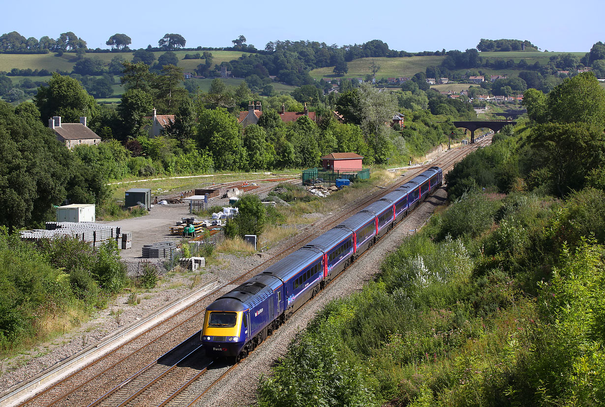 43093 passes the site of Chipping Sodbury station on 31 August 2013 with the 1B28 11:45 Paddington to Swansea First Great Western service. The station site still retains a couple of sidings, which are occasionally used by the permanent way department. |
