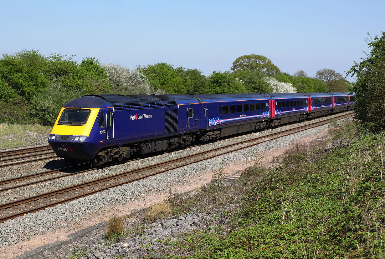 43133 passes Denchworth on 7 May 2013 with the 1C16 13:30 Paddington to Bristol Temple Meads First Great Western service. It looks like the paintwork around the headlights could do with some touching up!