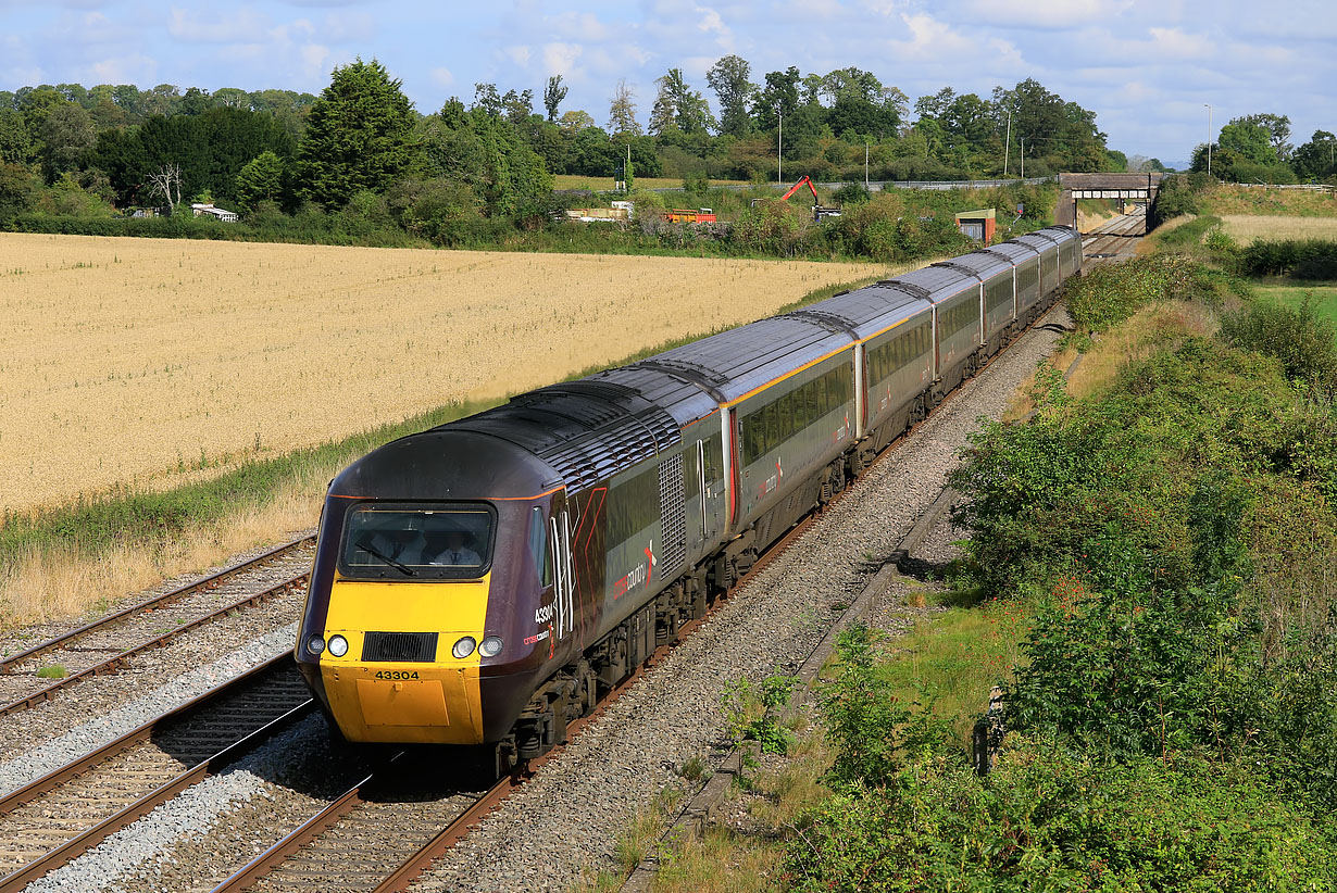 With just a few days to go before they are all withdrawn from service, everyone is getting their last pictures of the CrossCountry HSTs. 43304 passes Spetchley on 13 September 2023 with the 1V50 06:06 Edinburgh to Plymouth service, which on this occasion was terminated at Exeter St Davids, due to the line being blocked at Teignmouth. |