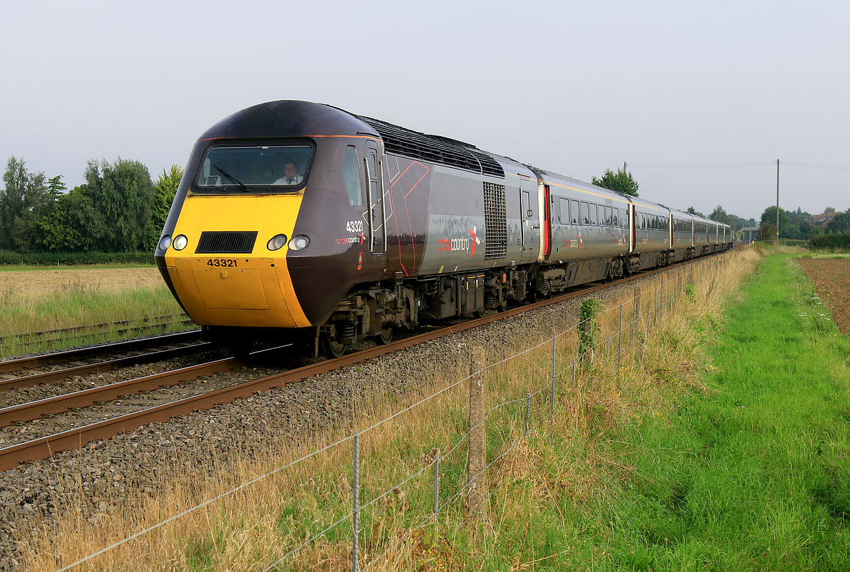 43321 passes Eckington on 7 September 2023 with the 1V44 06:12 Leeds to Plymouth CrossCountry service. Unfortunately the early morning sunshine had disappeared into high cloud, that naturally melted away again shortly after the train had passed!