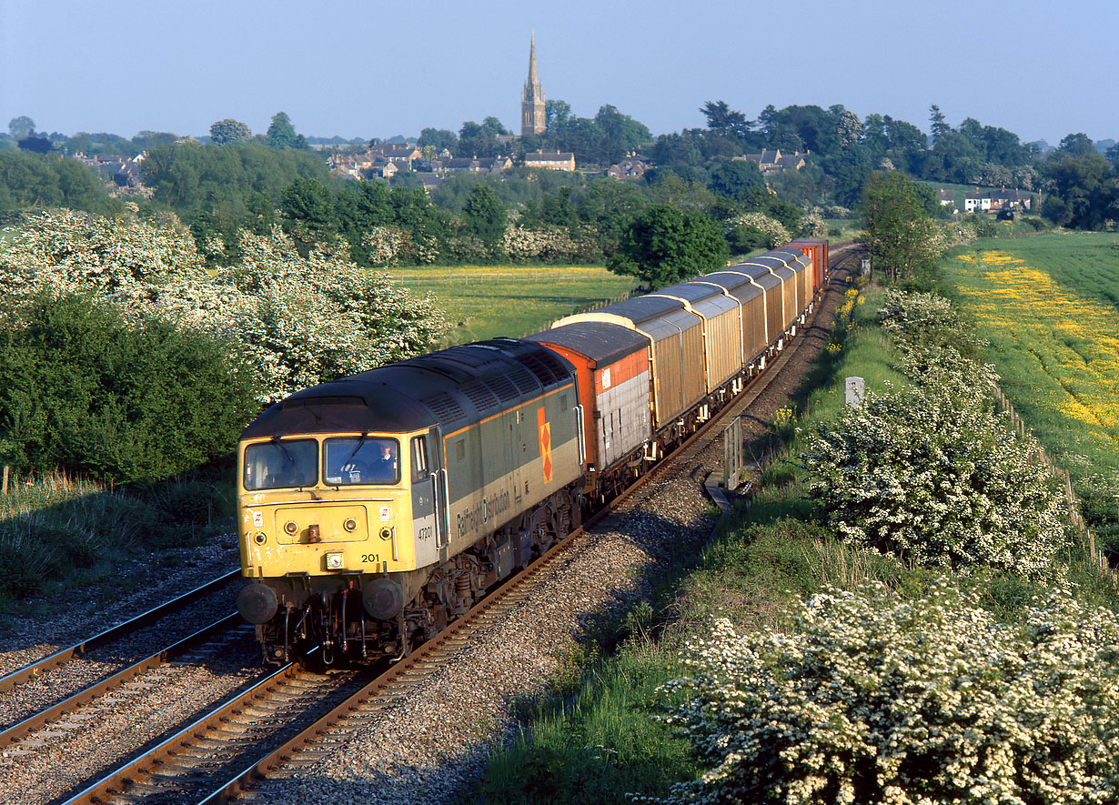 47201 passes Kings Sutton on 19 May 1998 with the 6M18 15:36 Eastleigh to Carlisle. This was part of the 'Enterprise' network, the successor to Speedlink. It was usually mostly composed of MoD stores traffic, but on this occasion it was all MoD traffic. |