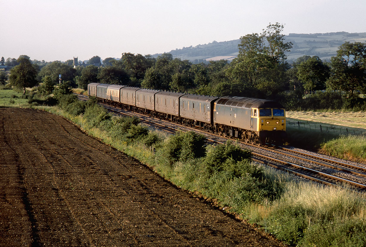 47298 passes Claydon on 1 July 1986 with the 1V88 12:43 Newcastle to Plymouth parcels. This was running right behind the late running 3A38 19:30 Worcester Shrub Hill to Paddington parcels, thus providing the opportunity to photograph two van trains within a couple of minutes. |