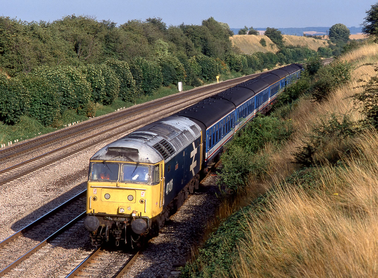 47426 Dibatag passes South Moreton on 15 August 1991 with the 1F40 16:20 Paddington to Oxford Network SouthEast service. The train would shortly cross over from the down main to the down relief line, before turning right at Didcot.
