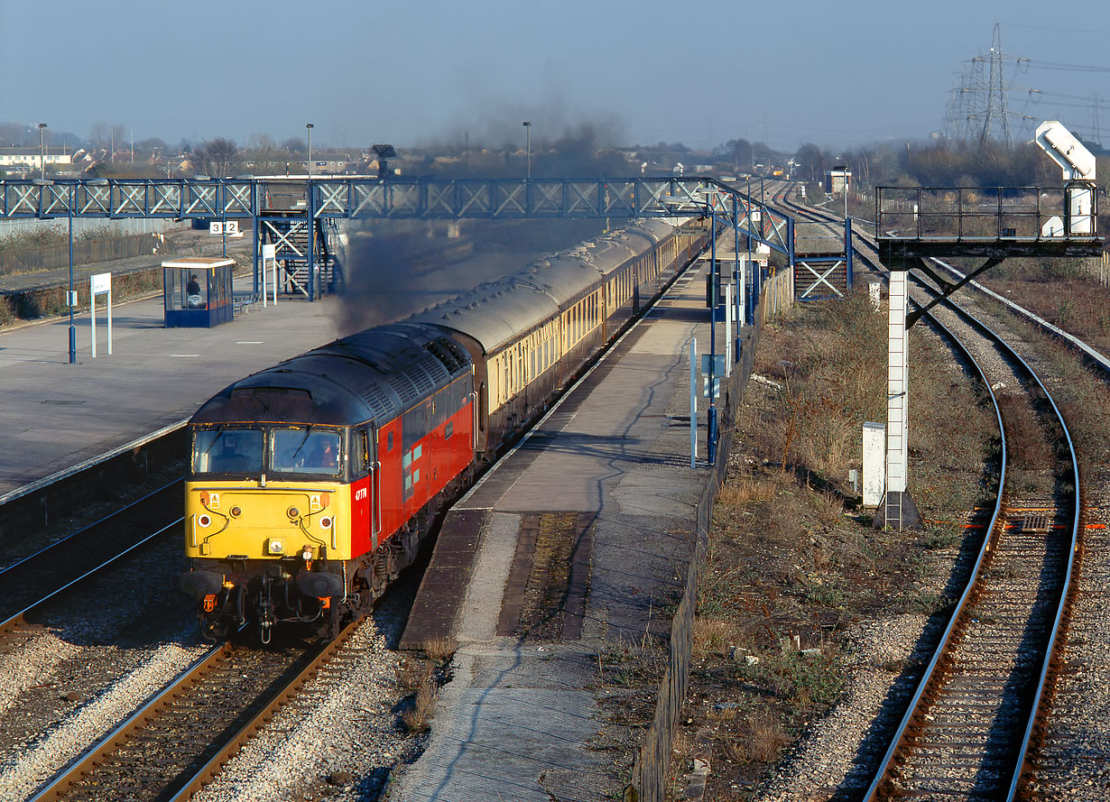 47770 Reserved accelerates through Severn Tunnel Junction station on 22 February 2003 with the 1Z27 12:15 Victoria to Cardiff VSOE rugby special. Definitely up market stock for a rugby match, and a world of difference to the image of 1970's football special! |