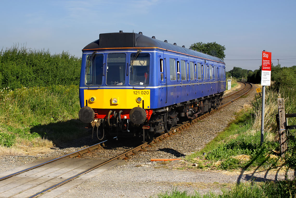 55020 (121020) passes North Lee with the 2P83 09:50 Aylesbury to Princes Risborough Chiltern Railways service on 10 August 2012. It is just about to pass over Apsley Manor level crossing, which as it names implies is an occupation crossing for Apsley Manor Farm. In the background a similar crossing giving access to Dodd's Farm can just be seen. |