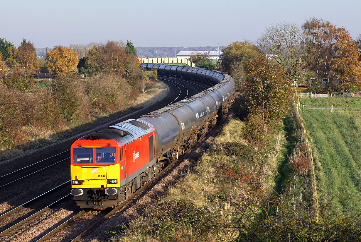 60044 Dowlow runs slowly along the relief line at Melton Ross on 6 November 2017 with the 6M00 14:27 Humber Oil Refinery to Kingsbury oil tanks. Although there was no sign of any clouds appearing, this superbly lit picture was the last of the day, as the shadows were beginning to lengthening, and nothing else of interest was due for a while. |