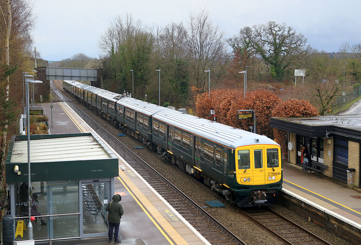 Heading into an uncertain future! 769935 & 769938 pass through Kingham station at high speed on 28 March 2023 with the 5Z69 10:40 Reading Traincare Depot to Long Marston ECS. GWR had planned to lease 19 of these bi-mode EMU conversions from Porterbrook, to replace Class 165 DMUs in the Thames Valley. They should have been in service by early 2021, but proved to be so unreliable during testing that they never entered traffic at all, and the whole project has been one enormous waste of money. |