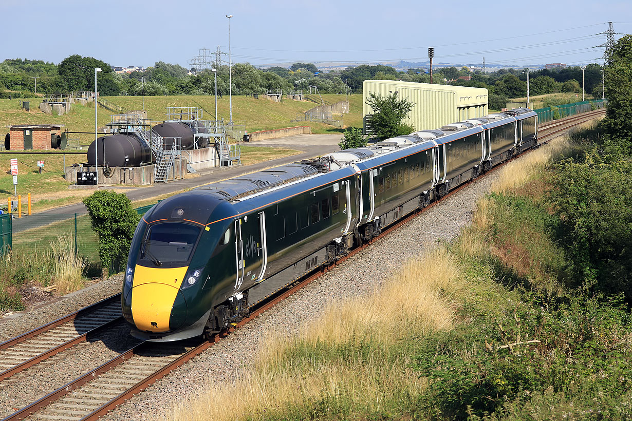 800027 passes the oil depot on the site of Bremell Sidings, as it heads away from is normal route with the 1B55 16:15 Paddington to Swansea GWR service on 6 July 2018. Instead of going via the Severn Tunnel, the train was reaching South Wales via Gloucester. |