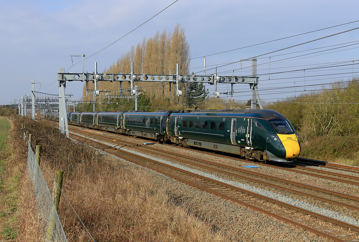 800028 & 800017 pass Challow on 8 March 2022 with the 1L11 07:43 Swansea to Paddington GWR service. The cloud in the background was rapidly advancing, and would soon put an end to the early morning sunshine.