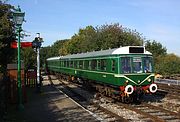 The former Western Region set L411, minus the centre trailer composite coach is seen here in use on the North Norfolk Railway on 2 May 1998 with DMS 51388 leading and DMBS 51346 at the rear. It is passing Sheringham Golf Course with the 16:00 Sheringham to Holt service. Subsequently the unit moved to the Swanage Railway. It is pictured here repainted into late 1960s condition with a small yellow warning panel replacing the original 'speed whiskers' and the roof all over black instead of the original white ends. |