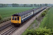 L401 (51333, 59485 & 51375) & L423 (51361, 59513 & 51399) approach Bicester Town station with the Oxon & Bucks Rail Action Committee 07:00 Oxford to Spalding (via Fenny Stratford and Bedford) special on 2 May 1992. In addition to a day out which took a pair of Class 117s well away from their home territory, this train was run to highlight the possibility of reopening the Oxford to Milton Keynes line for through passenger services. Finding a clear viewpoint that shows the whole train at 07:20 in the morning on the Oxford to Bicester line is not as easy as it would seem, and although this location from the then newly completed A41 Bicester southern bypass does provide an excellent position, it does unfortunately include Bicester sewage works in the background! |