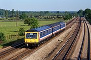 Although nearing the end of its long career working local services along the Thames Valley, L405 (51381, 59491 & 51340) has had a repaint into Network SouthEast livery and positively gleams as it passes Lower Basildon on 17 May 1992 with the 2C66 18:00 Reading to Didcot Parkway service. The set number is positioned further inboard that used to be standard. Within a few months it would be replaced by Class 165 & 166 Turbo units. The lead vehicle has found a new life in preservation at Mangapps Farm Railway Museum, but the other two vehicles were not so lucky, both being cut up in the late 1990s. Strangely, as if to emphasise they had finally fled the Western Region, one was broken up in Scotland, the other in Wales! |