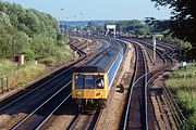 Instantly recognisable because of its non-standard yellow window modification. L414 (51350, 59502 & 51392) passes Hinksey Yard on 1 August 1991 with the 2C41 13:15 Banbury to Reading Network SouthEast service. |