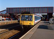 Former Western Region set L411 (now running as a two car unit with just 51388 & 51346) accelerates away from Sheringham on 2 May 1998 with 17:00 Sheringham to Holt service. It's new home on the North Norfolk Railway is certainly well away from anywhere it would have visited whilst in BR service. Note the signal with route indicator and high mounted shunt signal. |