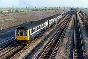 It's been a very long time since the view was anything like as open as this at Didcot North Junction. L419 (51356, 59508 & 51398) approaches the junction on 9 December 1986 with the 2C09 09:21 Oxford to Didcot Parkway service. The Paddington destination blind is a red herring! Unusually, this short distance working ran non-stop. Appleford Signal Box can be seen in the distance, directly above the DMU. |