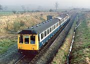 A pair of Reading allocated Class 117s well away from their usual patch on 27 October 1984. L402 (51377, 59487 & 51335) & L415 (51351, 59503 & 51393) pass Marshfield with the late running 08:48 Cardiff Central to Weston-super-Mare service. Both of these units would normally operate Thames Valley services out of Paddington, with Bristol or Cardiff units being more normal in South Wales. Obviously there would be a number of people going to Bristol on a Saturday morning, but six coaches through to Weston in the autumn is probably an extravagance! |