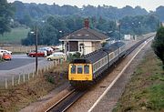 L400 (51374, 59484 & 51332) arrives at Charlbury on 27 August 1983 with the 2B60 16:33 Reading to Moreton-in-Marsh service. Quite why it is displaying Salisbury in the destination blind is a complete mystery. Class 117s would not normally go anywhere near Salisbury, and the London allocated ones definitely not. It is almost as if someone with too much time on their hands has deliberately wound the blind around until he found the most unlikely destination to display, just for a laugh! |