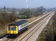 Driving Trailer Second 54285 (L285) is pushed by Driving Motor Brake Second 55024 (L124) on 3 March 1984, as they work the Saturdays only 2V90 13:46 Banbury to Didcot service, which on this occasion was running 15 minutes late. The location is Hinksey Yard, just to the south of Oxford, which in the early 1980s was not yet enveloped in trees. The lack of vegetation is because BR were still maintaining the lineside, although the absence of anything green in the field on the right is because the ground was contaminated due to the former presence of the Oxford gasworks! |