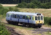 In 2003 Chiltern Railways refurbished 55020 (121020) and painted it into this smart blue livery with silver banding. The work also included the fitting of secondary door locking, which made it exempt from the mass withdrawal of Mk 1 stock at the end of 2005. This work was done to release a Class 165 for refurbishment. On 14 July 2003, it is pictured passing North Lee with the 18:55 Princes Risborough to Aylesbury service. The single car unit was ideally suited to this short distance shuttle service. |