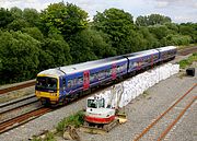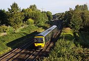 165112 emerges from the shade at Yarnton on 27 July 2006 as it heads south with the 17:30 Banbury to Paddington First Great Western service. The bridge in the background carries the A44 Oxford to Chipping Norton road over the railway. Photo taken from a public footpath footbridge. |