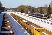 165116 passes the site of Yarnton Junction station (which closed, along with the passenger service on the Fairford Branch, in 1962). It is working the 1P27 10:59 Great Malvern to Paddington GWR service on 28 January 2019. Photo taken from a public footpath crossing. |