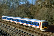 A close up view of 165102 as it passes Cholsey on 6 December 2006 with the 12:38 Banbury to Paddington 'all stations' First Great Western service. This makes an interesting comparison to 166215 which passed by a little earlier with the 12:45 Oxford to Paddington. I will leave you to decide whether this former Thames Trains livery or 166215's First Great Western livery suits these Turbo units the best. |