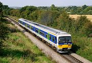 165103 & 165137 approach Didcot North Junction on 8 October 2010 with the 2P60 14:37 Oxford to Paddington First Great Western service. Appleford church, and the Culham Science Centre are both clearly visible in the clear autumn sunshine. |