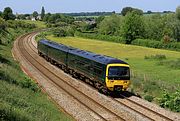 165112 accelerates away from Heyford station on 11 June 2022 with the 2V13 09:09 Banbury to Didcot Parkway GWR service. This location is just a short walk along the Oxford Canal towpath, to the south of Heyford station. |